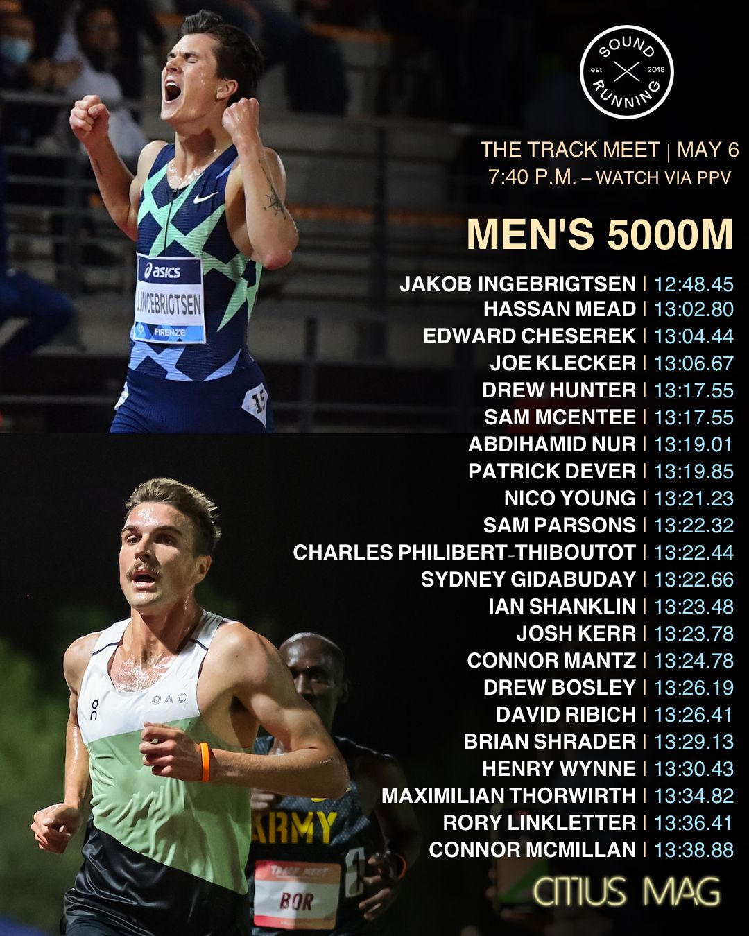 Be sure to check out Sound Running's Coverage of the meet we discuss in this episode on May 6th. The Men's 5K could be epic.